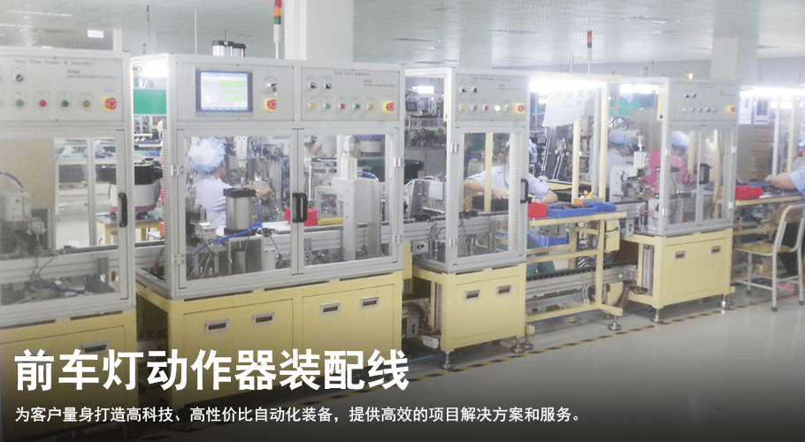 公司的主要产品有:汽车相关产品流水线设计及改造;工装治具;工厂无人化物流车;塑料焊接机;汽车内 饰件热压成型设备;汽车发动机监测设备;LED LCD显示器装配线;汽车零部件高压清洗机;汽车传动轴类轴 跳动检测机;汽车零部件涂油防锈机等汽车零件类及电子产品类生产线设备。
